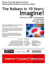 Students from many different universities and from all regions of the southern Balkans met at ACT to discuss the future of the region: Aristotle University, Thessaloniki; European University, Skopje; Macedonia University, Thessaloniki; South-East European University, Tetovo; University of Western Macedonia, Florina; American College of Thessaloniki.